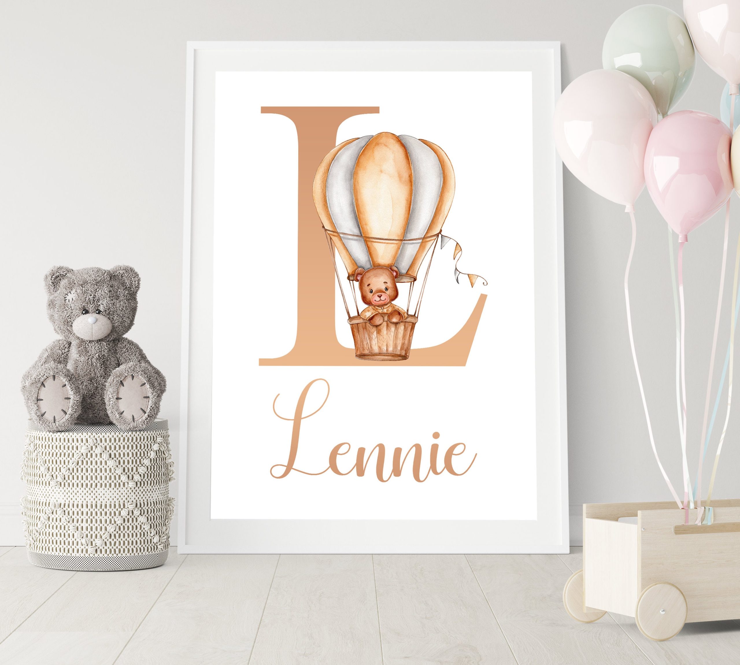 These cute nursery Teddy Bear wall art prints is personalised with your little one’s Name and large initial or if you have something else in mind pop a message through, we love to chat.