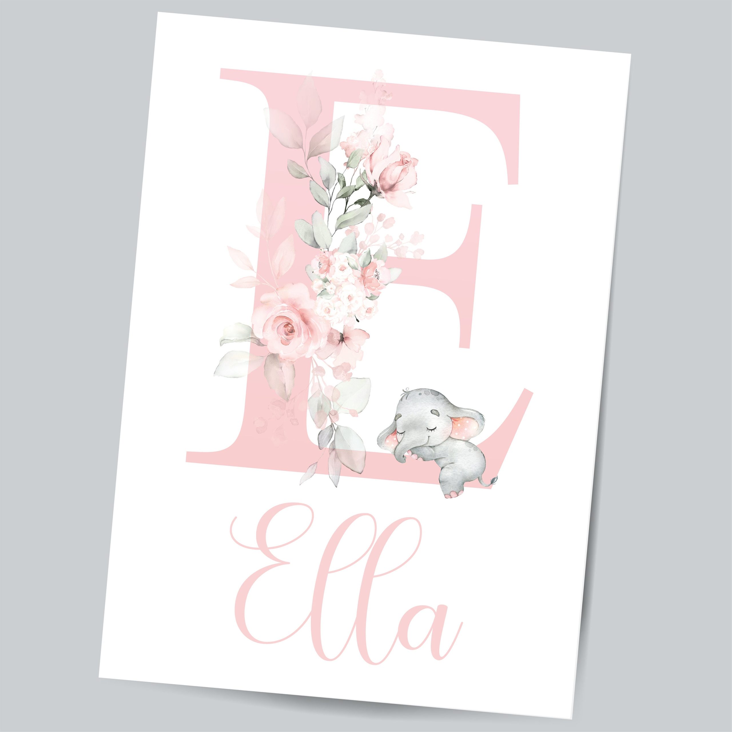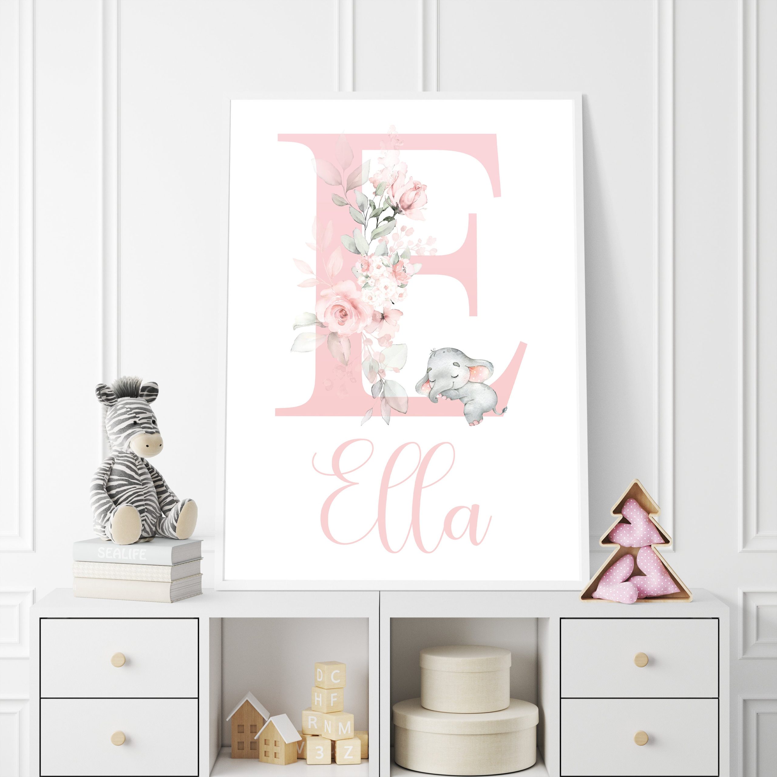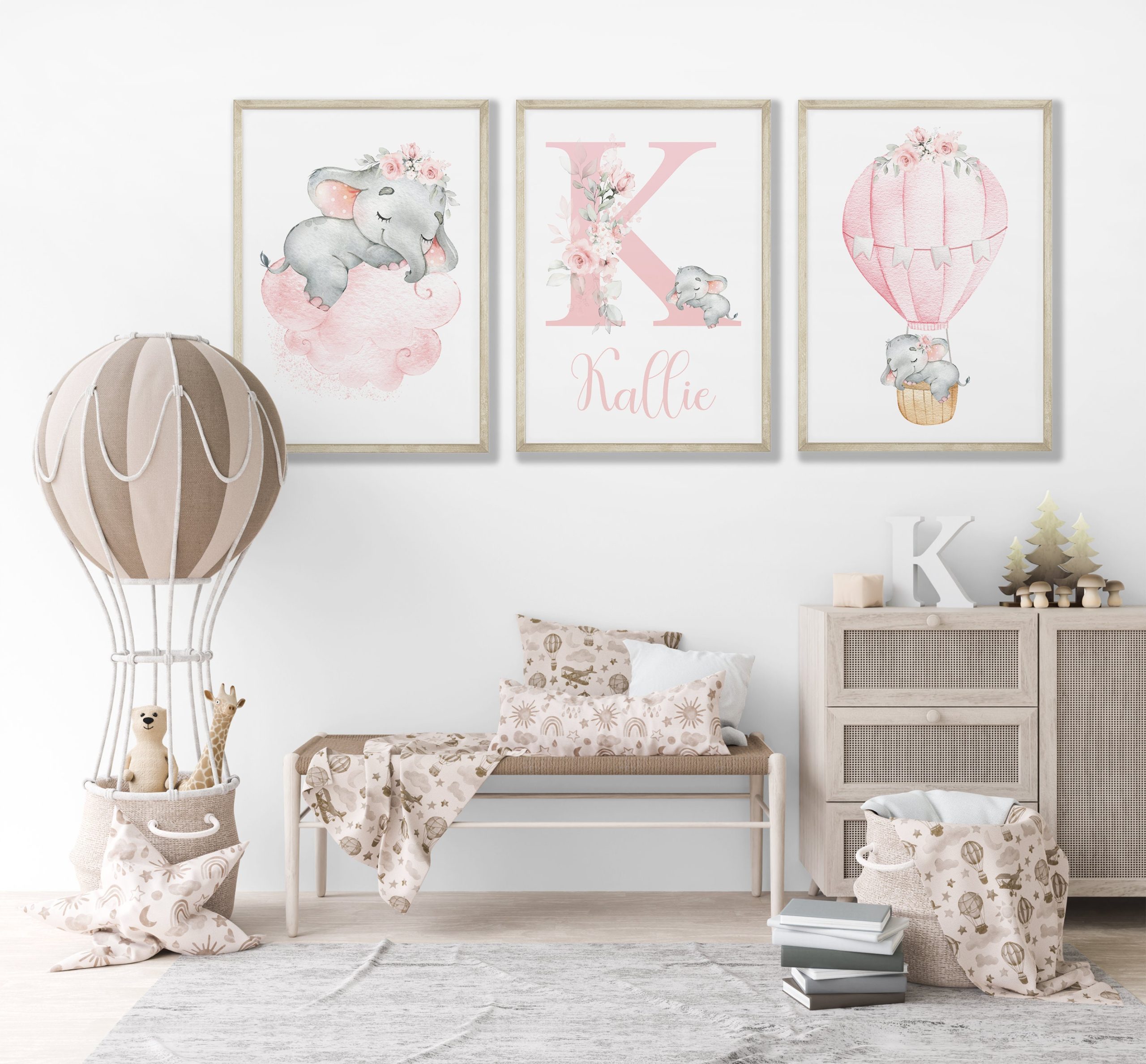Bring life to your walls with our adorable Personalised Elephant Nursery Wall Art for Baby Girl